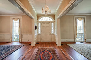 The home passed through generations of the Brown family until 1993 when it was purchased by the late J. Carlton Norris whose legacy lives on and who also was so much a part of the preservation of one of Georgia's finest Historic properties. As it stands today, the home has evolved into a pristine Federal style two -story home of approximately 3,500+ square feet boasting many architectural features, including wainscoting, glistening heart-of-pine floors, lovely chandeliers, high mantles on 8 fireplaces (most fireplaces are wood burning with the Master Bedroom and Downstairs Bedroom being gas logs), and a beautiful spindled staircase with Newell posts. Large windows, many of which are floor-to-ceiling, bring in natural light throughout the home. |